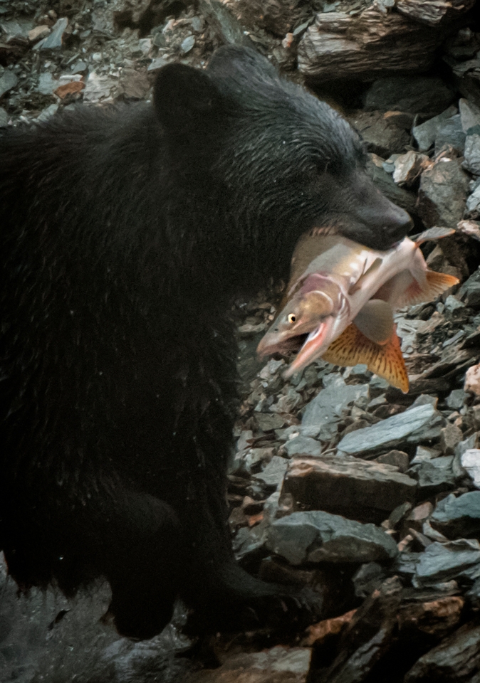 Okay, no big deal. I had another chance in Ketchikan. But then that tour was cancelled due to rain before the plane even got off the ground. So a bit of a disappointment. But since the second tour was cancelled early in the day I was able to book a backup tour. This was a ground tour that didn’t go to a secluded stream…it went to a Salmon hatchery down the coast. Not what I had planned but I did manage to get a couple (black) bear shots…