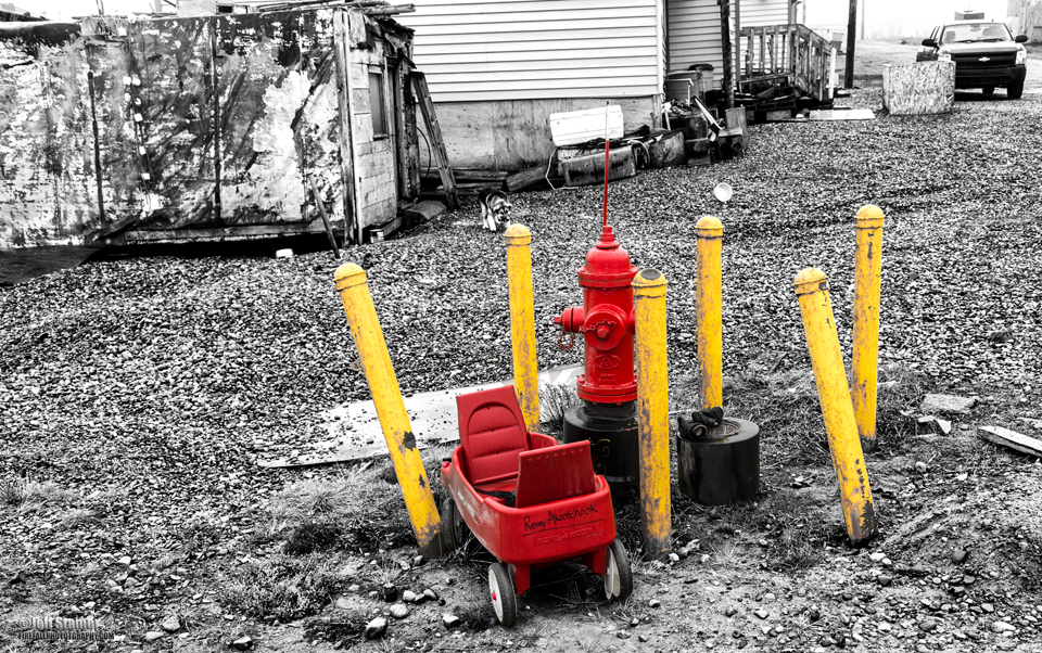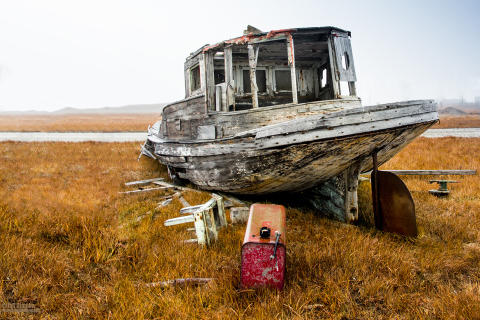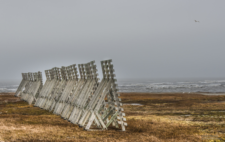 There are no roads to Katovik. A small group of us had flown in and we were hyped to see the bears. But the weather was bad…and it got worse. In fact the waves were so high that the local captains refused to take us out on the boats to the area where the bears hung out. Since we couldn’t photograph bears most of the folks decided to chill out at the lodge. That didn’t work for me. I figured I could chill out when I got home…heck, I had come halfway around the world to take some darn pictures. One of the other guys, Cesar Aristeiguieta, felt the same way, we so grabbed parkas, mud boots and cameras then headed out to see what wonders Kaktovik might hold. The drive from the gravel airstrip hadn’t revealed much…a few roads, boats, clutter and trash…but nothing ventured, nothing gained, so off we went.