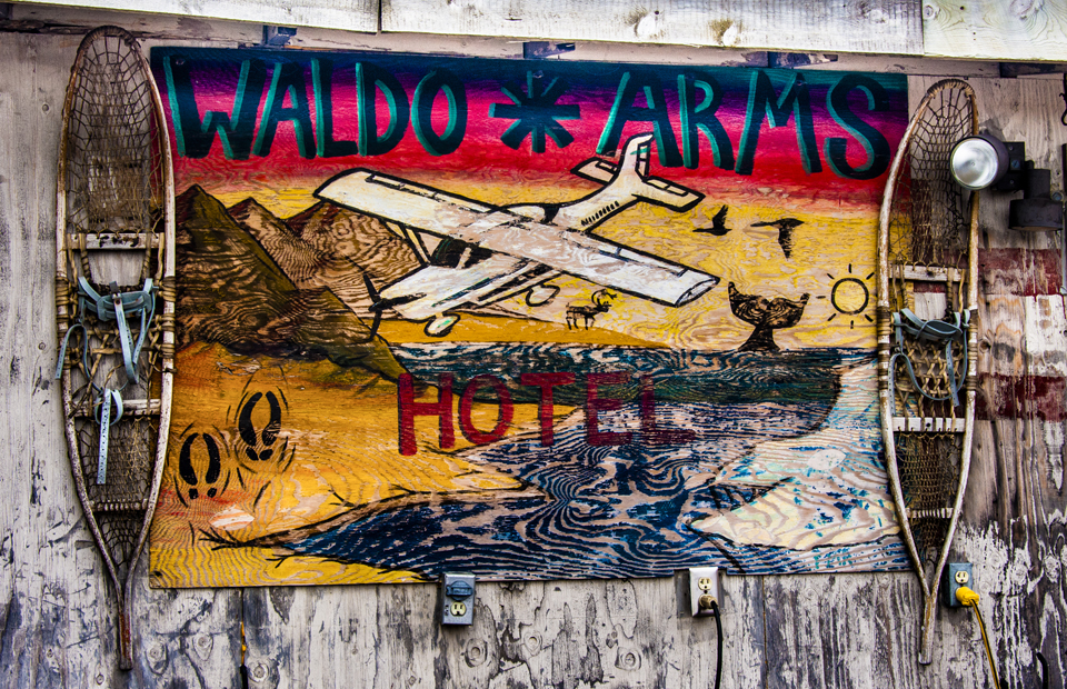 Basically, the Waldo looked to me like a half-dozen mobile homes pushed together with doorways cut open between them. The bedrooms are tiny, the bathrooms are communal. There is a dining room and lounge but don’t be expecting the Ritz (or even Motel 6). With that said, I don’t think we noticed the rough edges after a few hours…the Waldo made up for its lack of style and sophistication with friendly staff, great food and a funky, comfortable, Arctic lodge atmosphere.