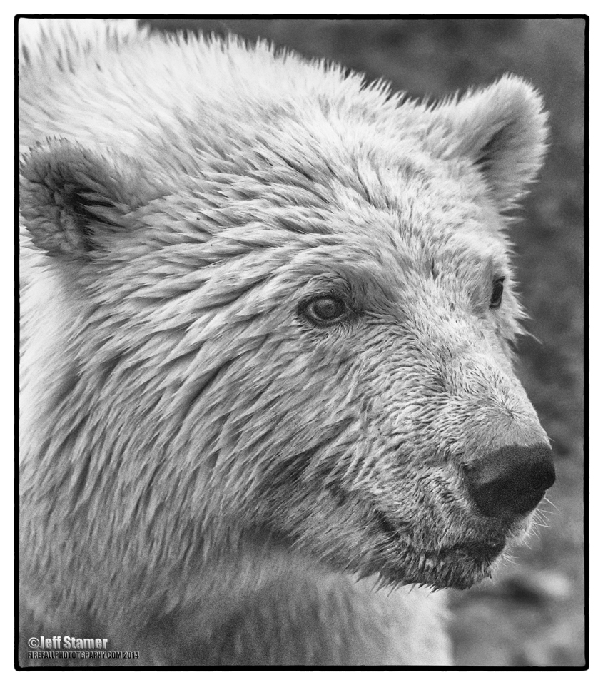 - Aperture. If light is poor, you may have to shoot wide open. If the bears are at a distance, then depth of field won’t be a problem. However, if they are close, you may have to select a higher aperture to avoid having part of the head out of focus. If so, adjust your ISO up (or set your ISO on an auto function so it does it changes automatically).