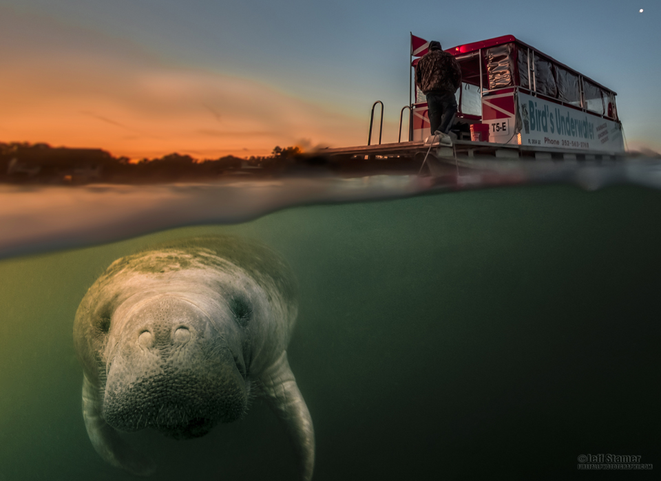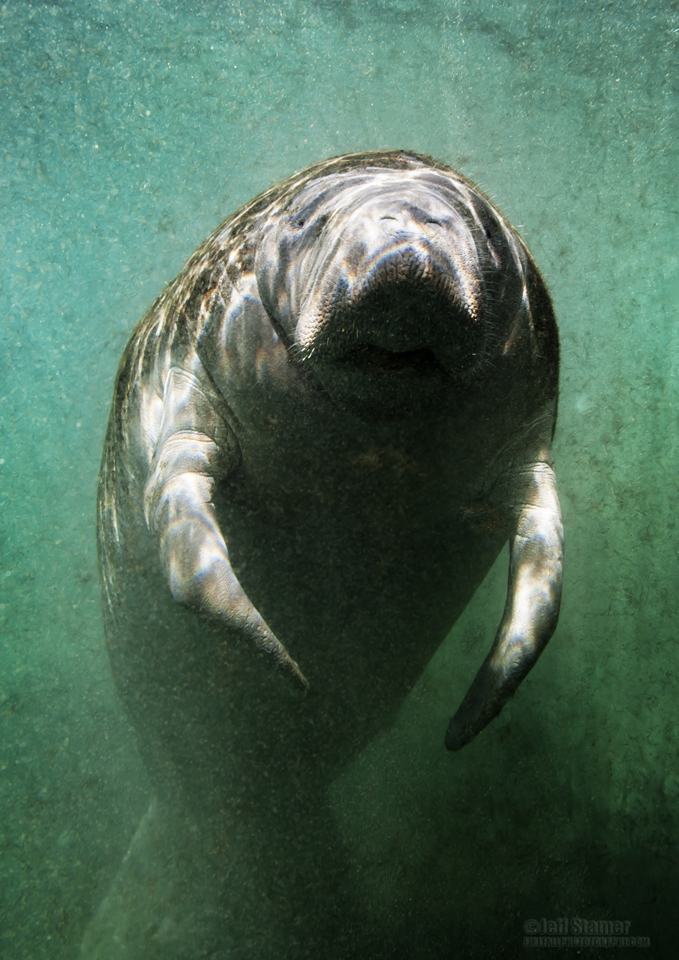 Although I look forward every year to photographing Manatees, it is still a bit of a shock when the alarm starts wailing at 3am and I have to haul myself out of my bed, into my Subaru and make the two hour drive to Crystal River. Sometimes, while making that trip, I start to ask myself if it is really worth the trouble…I mean, I have thousands of manatee photos…do I really need more? But once I get in the water and the first manatee slowly paddles up and butts his head into my facemask, well, then I remember why I do this: