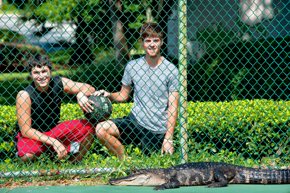 My son Ryan (on right) and his cousin Jonathan, had walked down to the end of our street to play some basketball. Ryan had just entered the court when it noticed it was already occupied! He quickly decided that the gator had dibs on the court and made the understandable decision to high-tail it out of there.