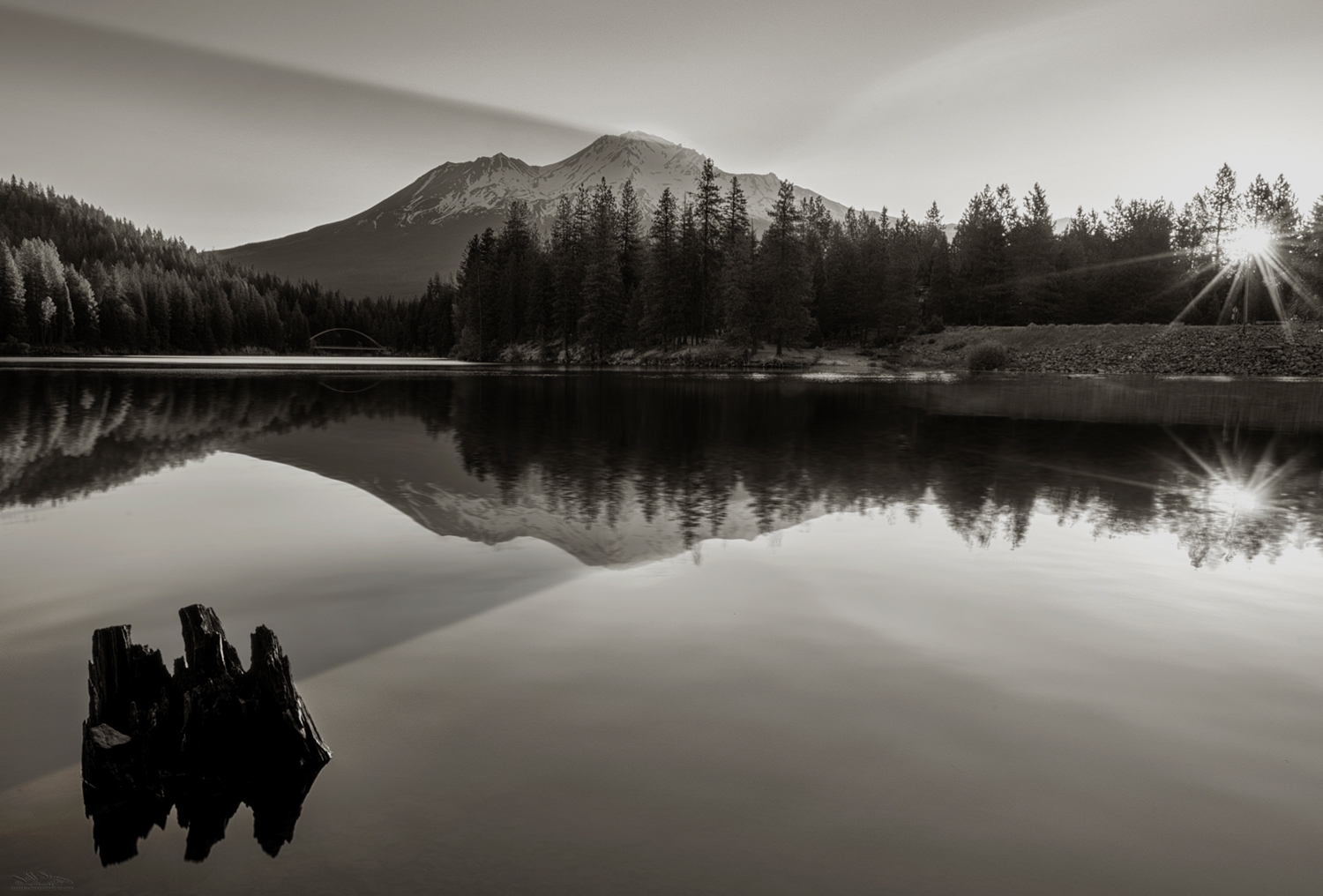 If you walk around to the back side of Heart Lake, you can get a shot of Mt. Shasta positioned in the center of the ‘infinity edge.’