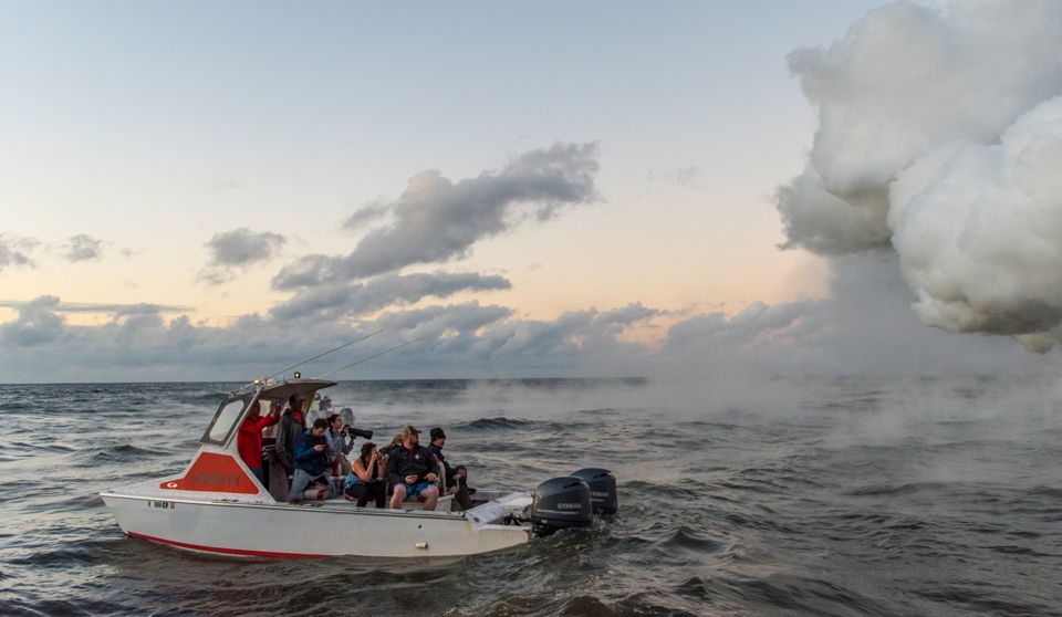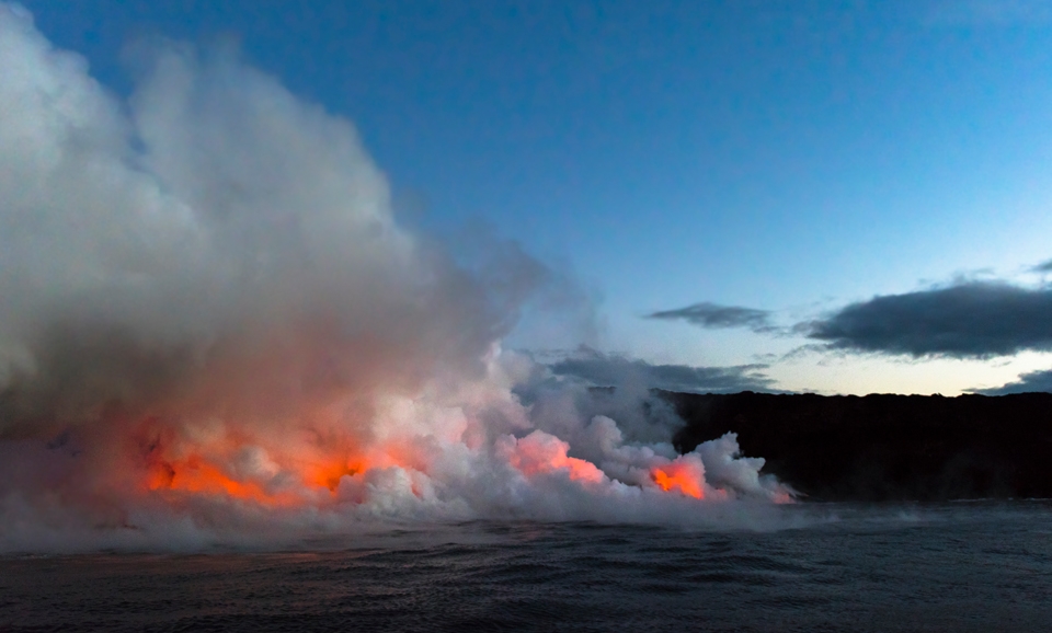 how to photograph lava from a boat in Hawaii Big Island Hawaii Kilauea volcano lava ocean entry