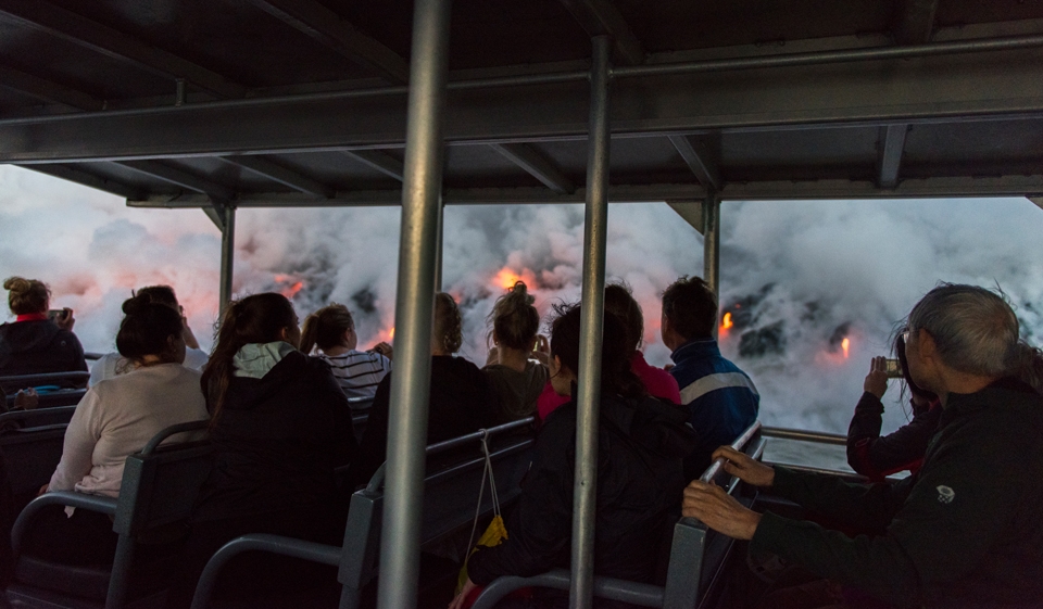 First of all, to see the lava ocean entry you have to go out into the open ocean in a relatively small boat.  This isn’t a pleasure cruise, it can get rough so if you don’t like being in a rocking/jarring boat, have back problems or if you are frail, then this might not be something you want to tackle.  In fact, some of the tour operators won’t sell tickets to folks who are pregnant, over 75 years old or weighing over 275 lbs.  They seem to take safety seriously and aren’t shy about turning people away that could potentially get injured (and sue them).