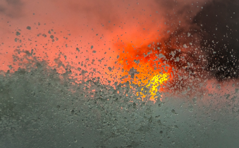 Once you get to the lava, the captain will spin the boat around every few minutes so that customers on both sides of the boat can see the show.  In other words, you will only be facing the lava for about half the time you are there.  When you are turned away from the lava, dry your lenses, check your photos and make sure your exposure and focus look good.  Then you can adjust your settings accordingly.  After that you can pass the time by taking photos of the sunrise and grumbling that the people on the other side of the boat get to face the lava more than your side…