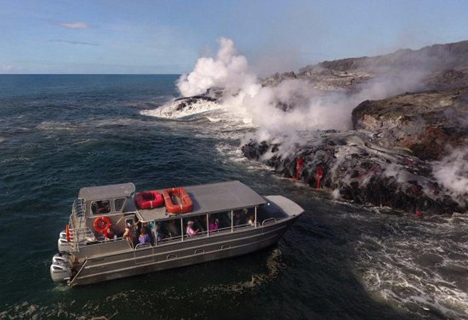 As of Nov. 2021, there are four tour operators licensed to conduct ocean tours within 300 feet of the lava entering the ocean: Lava Ocean Tours, Moku Nui Lava Tours, Kalapana Cultural Tours and Hawaiian Lava Boat Tours.  I’m sure you can find other tours and they will be cheaper.  But consider this:  it is at least a 20 mile ride on the open ocean to the lava:  Do you really want to take the chance on a unlicensed operator?  Plus, the Coast Guard has been known to board and shut down illegal operators