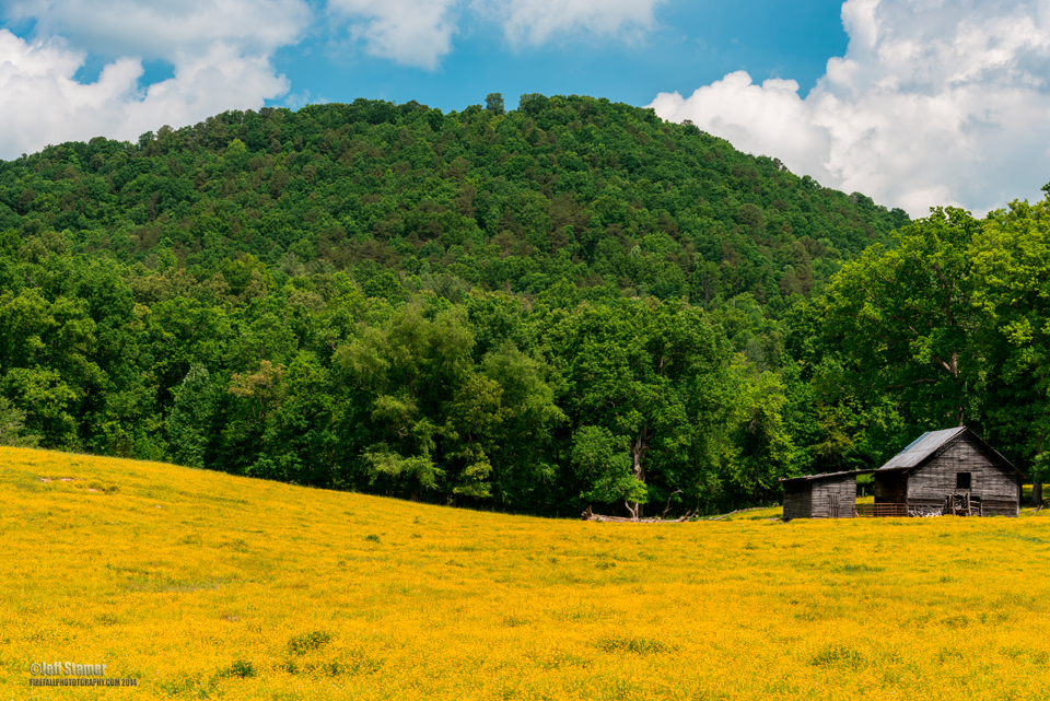 The barn on the photo to the right resulted in another unplanned stop a few minutes down the road. I loved the brilliant field of yellow flowers contrasted against the green hill and blue sky.