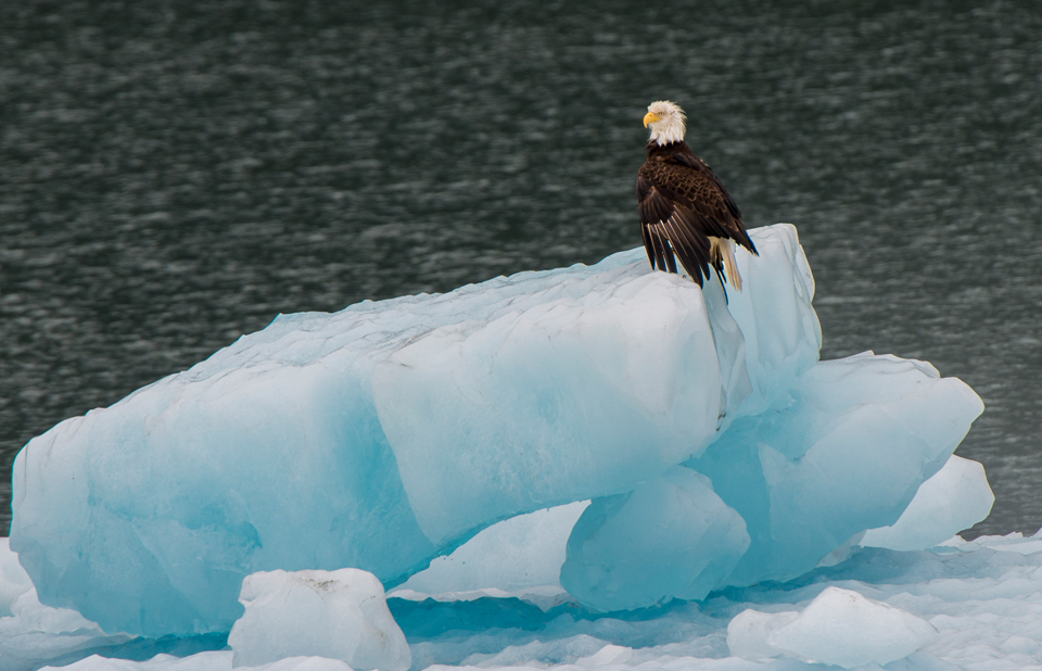 Soon we had to head back to port. As the boat slowly cruised back, the sun tentatively begun to polk thru the overcast. As it did, I spotted this eagle who had clearly been drenched and was trying to dry out his wings.
