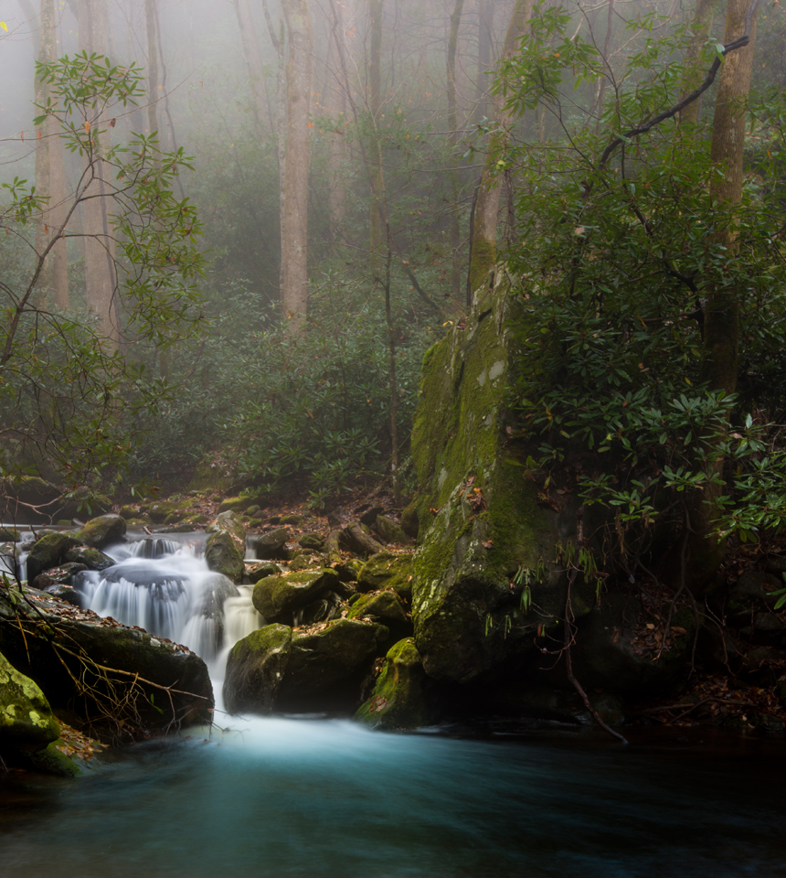 Of course, I hoped to get some decent photographs as well, but we had missed most of the fall color and the weather was just plain ugly. Rain, clouds, more rain. Not ideal weather for the glorious sunrises or the mountainsides of autumn color my son had hoped to catch. But, if there is one truism about photography, it is that bad weather can make good photos! Rain does help to saturate colors and overcast skies are ideal for photographing streams and waterfalls. So we grabbed our raingear and headed out.