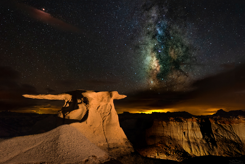 The top shot was this image of Mars and the Milky Way over the Bisti Badlands. I spent a lonely night here and had to experiment a lot with the LLL (low level lighting) but the results were sweet!