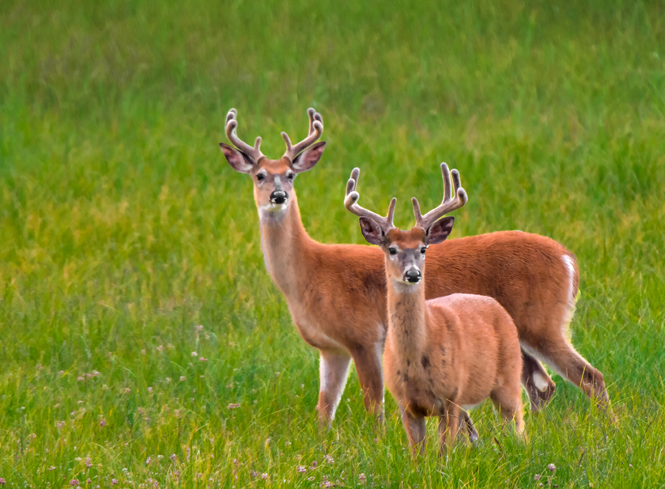 A few minutes down the road I spotted two nice bucks grazing in a meadow off to the right. Since we certainly had the time, I pulled over, grabbed my big 200-400mm and stalked them for a bit.