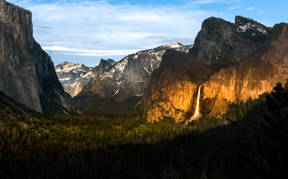 PS:  This video was shot during March which is a great time of the year to watch sunsets because both sides of the valley are illuminated at the end of the day.  Plus, the sun shines thru a small opening in the mountains to the west creating the ‘spotlight’ effect on Bridalveil Falls you see in my photos.